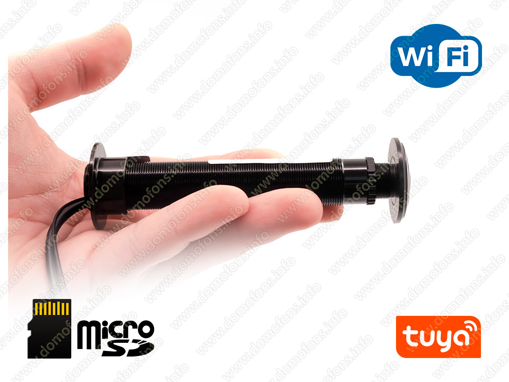 FullHD видеоглазок WiFi-TUYA для входной двери "IHome-HQ01-Tuya" устанавливается во входную дверь вместо обычного глазка и визуально ничем не отличается от него. Устройство подключается к сети Интернет по Wi-Fi и позволяет пользователям просматривать изображение дистанционно со смартфонов (Android; iOS) через бесплатное приложение.